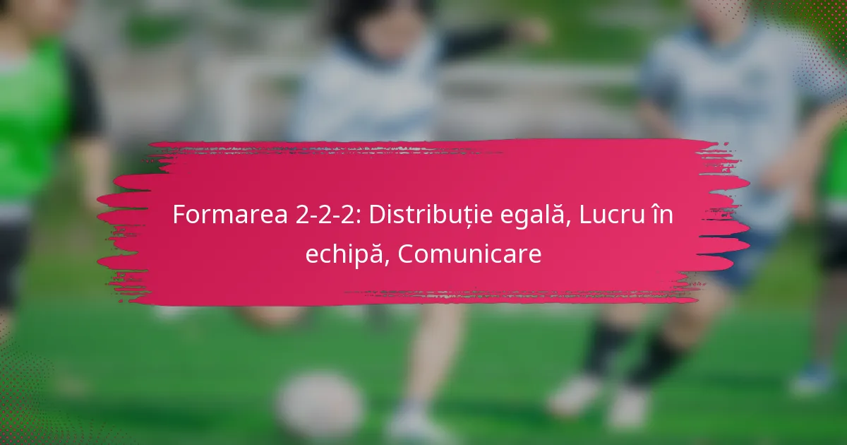 Formația 2-2-2 este o abordare strategică care pune accent pe distribuția egală a rolurilor, colaborare și comunicare eficientă. Acest model este aplicabil în diverse domenii, inclusiv sporturi, afaceri și educație, îmbunătățind colaborarea și eficiența.